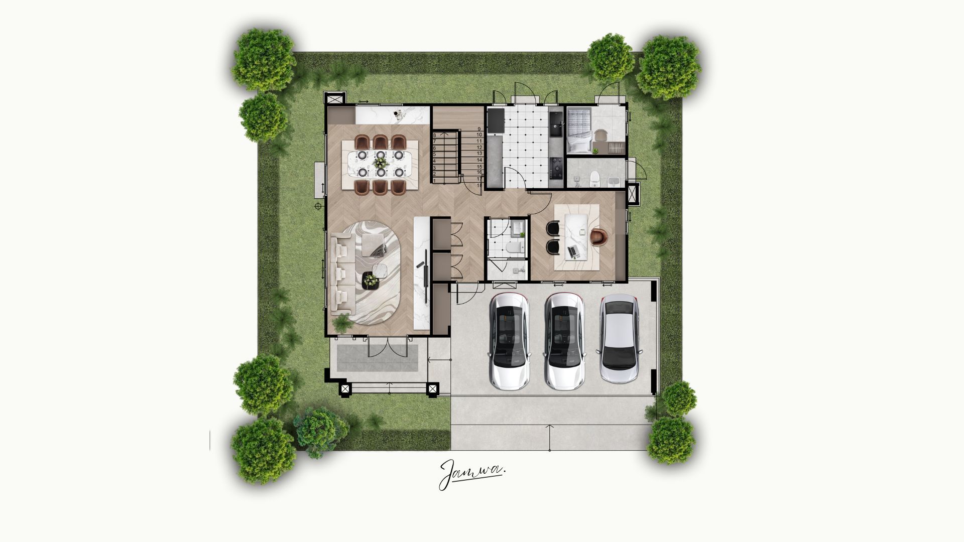 รับลงสีแปลนบ้าน หมู่บ้าน คอนโด เพื่อการนำเสนอ 2D,3D