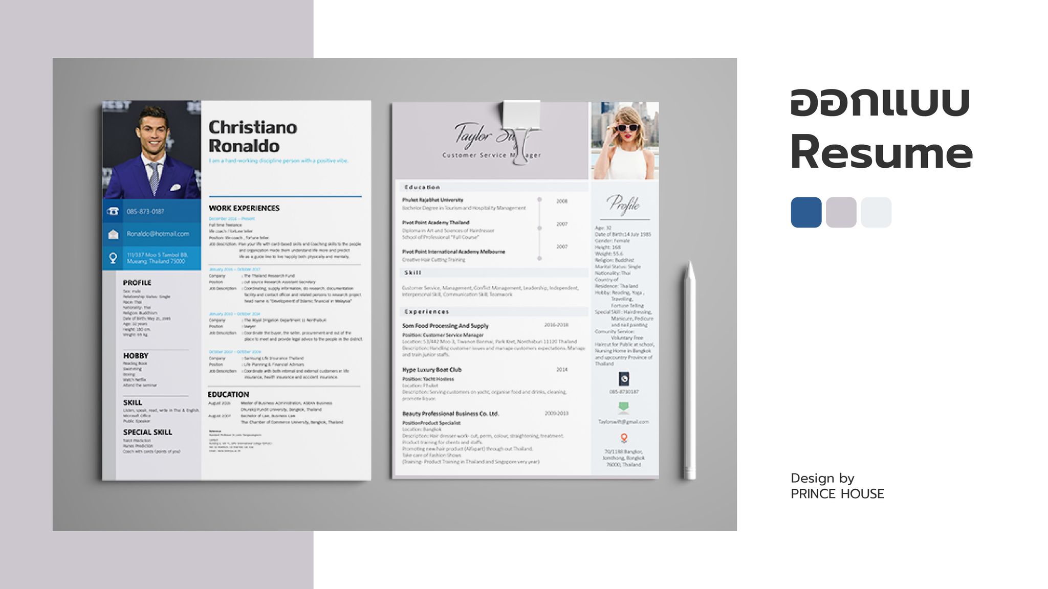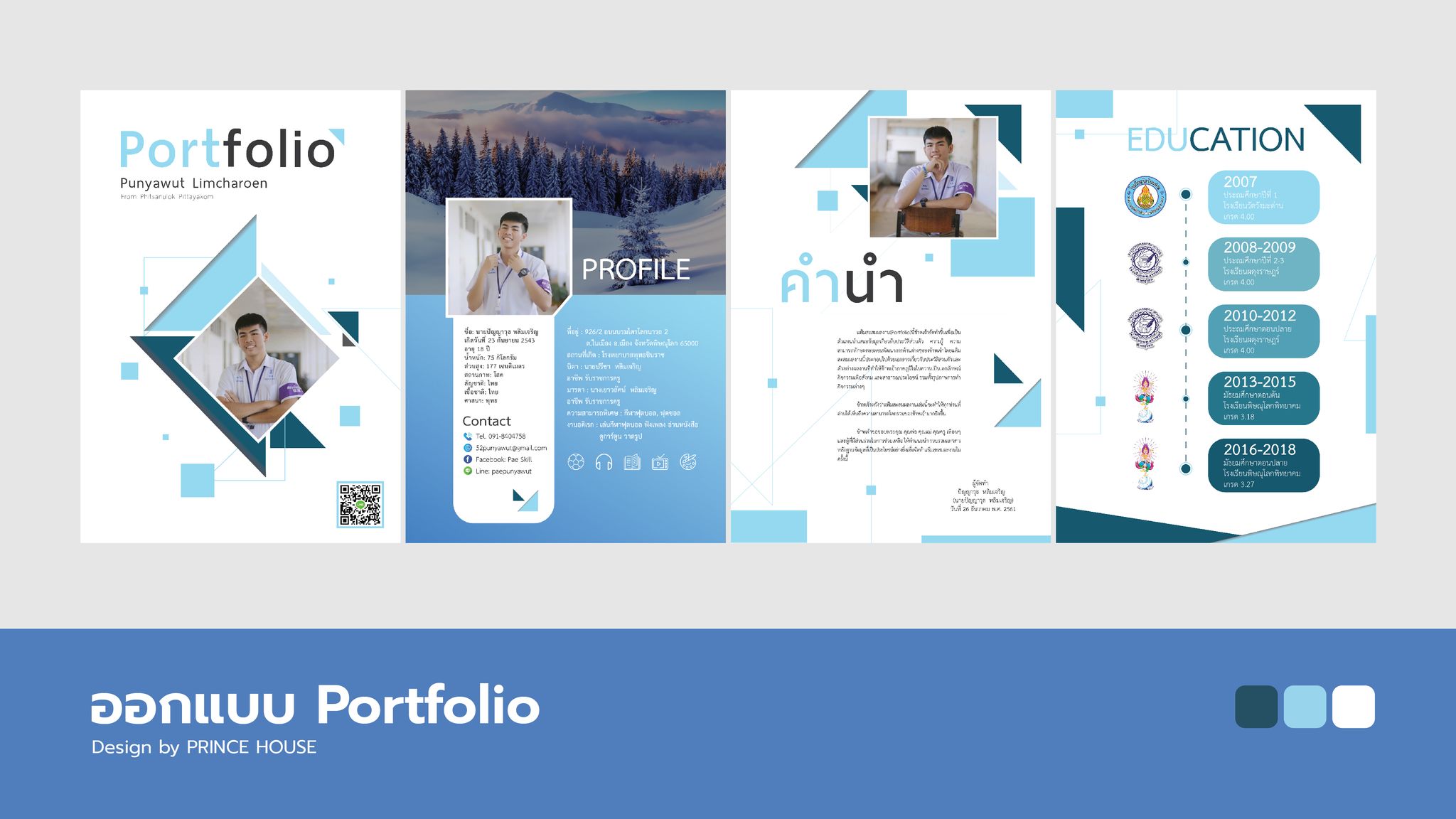 สวัสดีครับ รับออกแบบงานพอร์ทโฟลิโอ้และเรซูเม่ มีประสบการณ์การออกแบบกว่า 5 ปีครับ