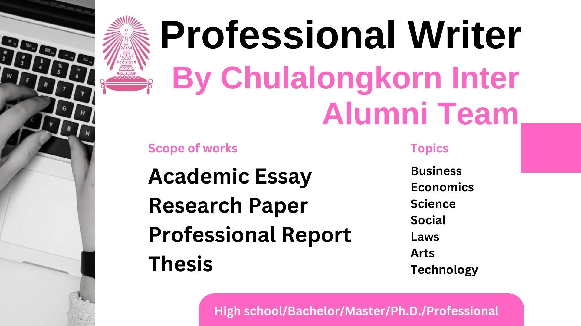 Our team comprises dedicated Chulalongkorn alumni who excel as professional academic writers across diverse fields, including Business, Economics, Sci