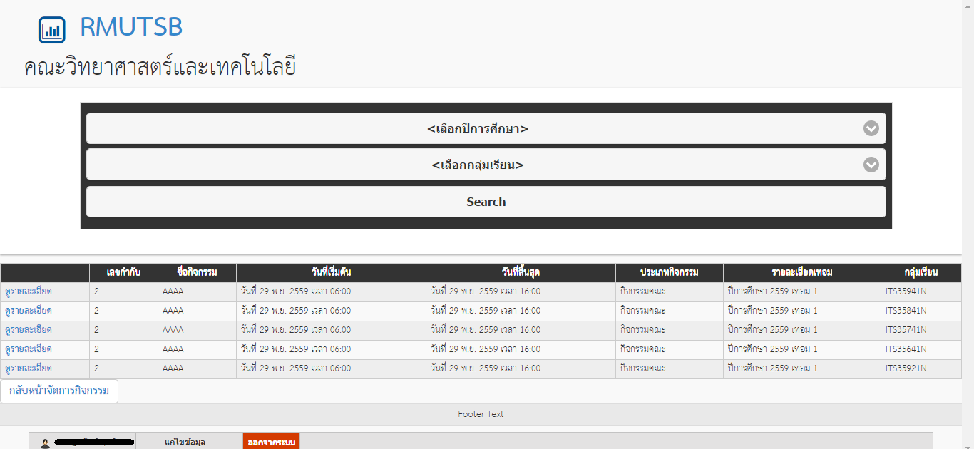 เว็บตารางกิจกรรมและสร้างรายงาน