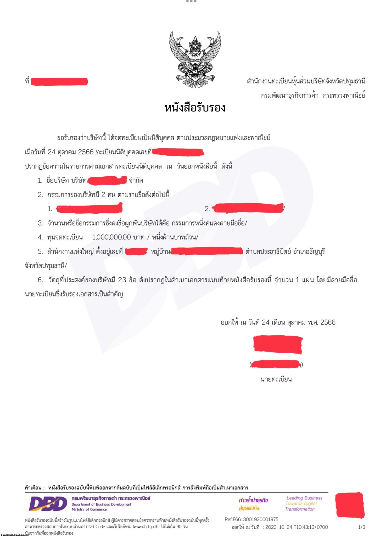 - ใบสำคัญจดทะเบียน