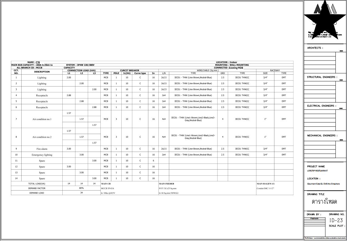 เซ็นต์รับรองเอกสาร แบบวิศวกรรมไฟฟ้า ขอบข่ายสามัญวิศวกรรมไฟฟ้