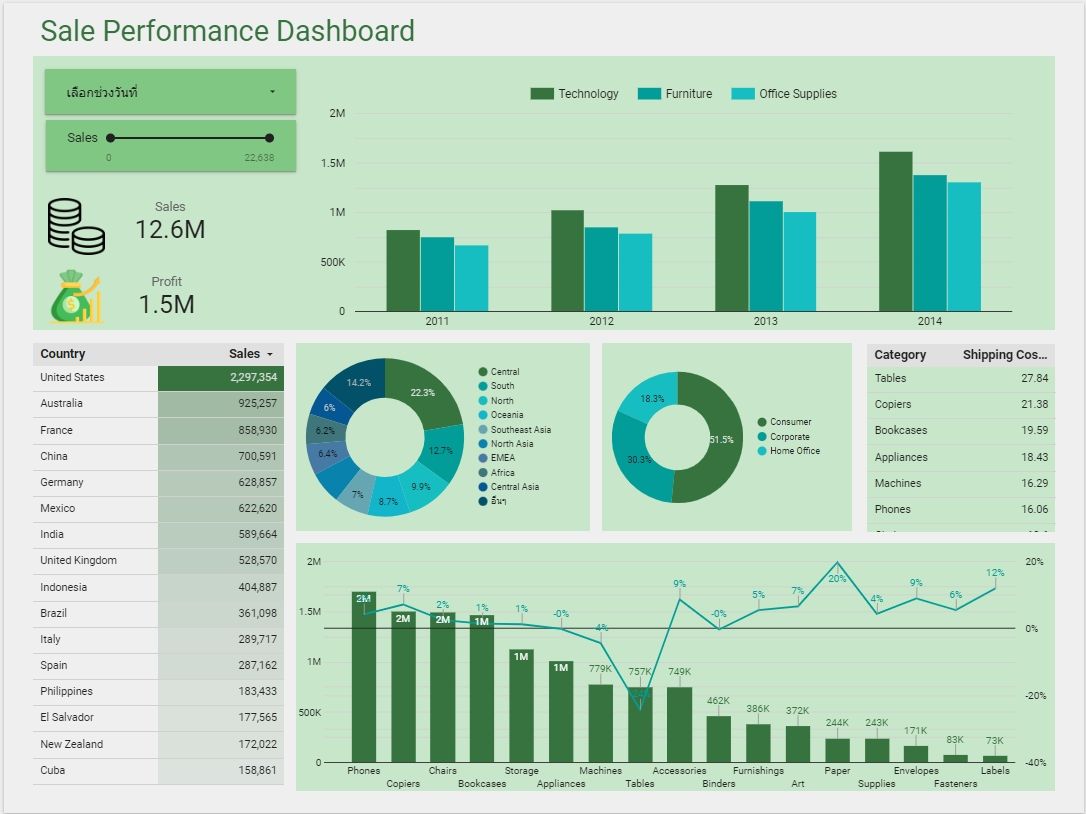 1,จัดทำ Dashboard ใน Looker Data Studio หรือ Excel ตามที่ต้องการ (1 หน้า)