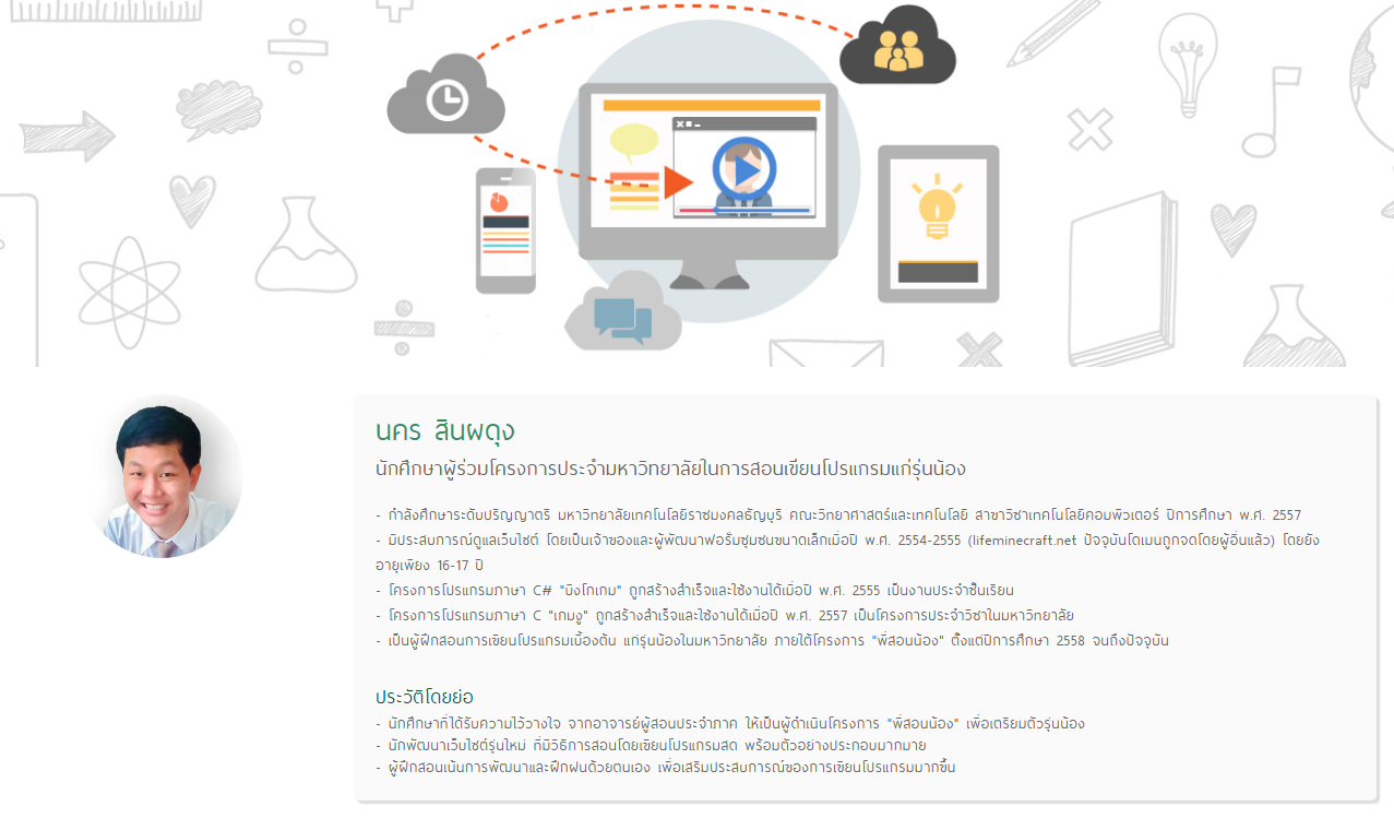 เริ่มตั้งแต่ปี 2558 (อายุ 19) โดยได้รับมอบหมายจากอาจารย์ที่มหาวิทยาลัยให้ดูแลโครงการที่เกี่ยวกับการสอนโปรแกรมให้กับน้อง โดยเป็นภาษาซี จนได้รับแรงบัลดาล ใจนำสิ่งที่สามารถสอนได้นำขายลงออนไลน์จำนวน 2 คอร์สเรียนในปัจจุบัน และกำลังดำเนินการอยู่ตลอดเป็นงานอดิเรก
