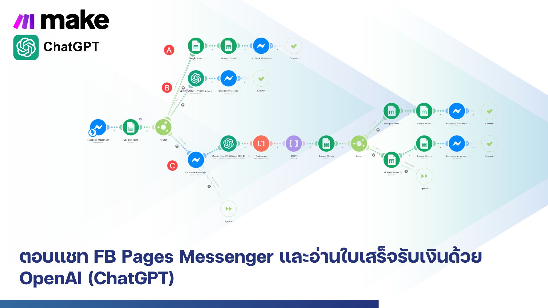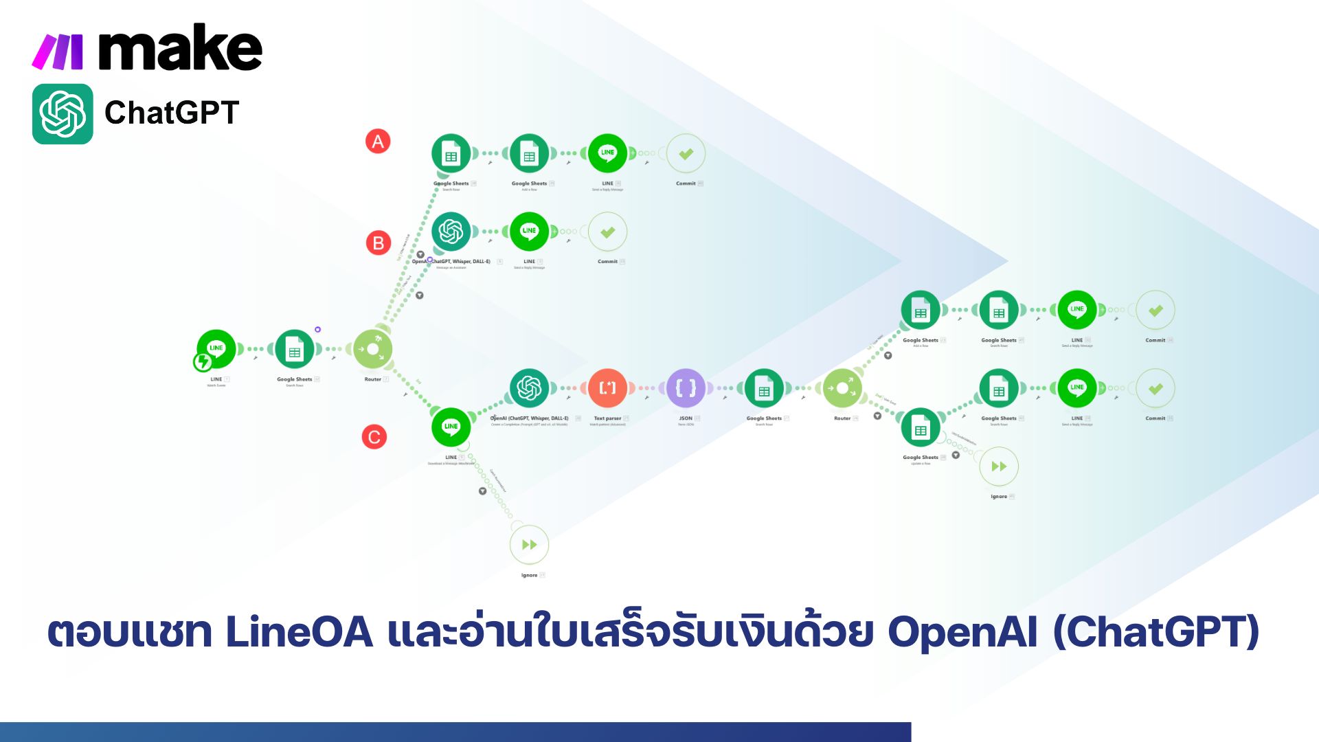 ขั้นตอนการทำงานสำหรับ งานออกแบบ Make Automate (Line API , Facebook API , Chatbot , ChatGPT , Gemini , OCR)