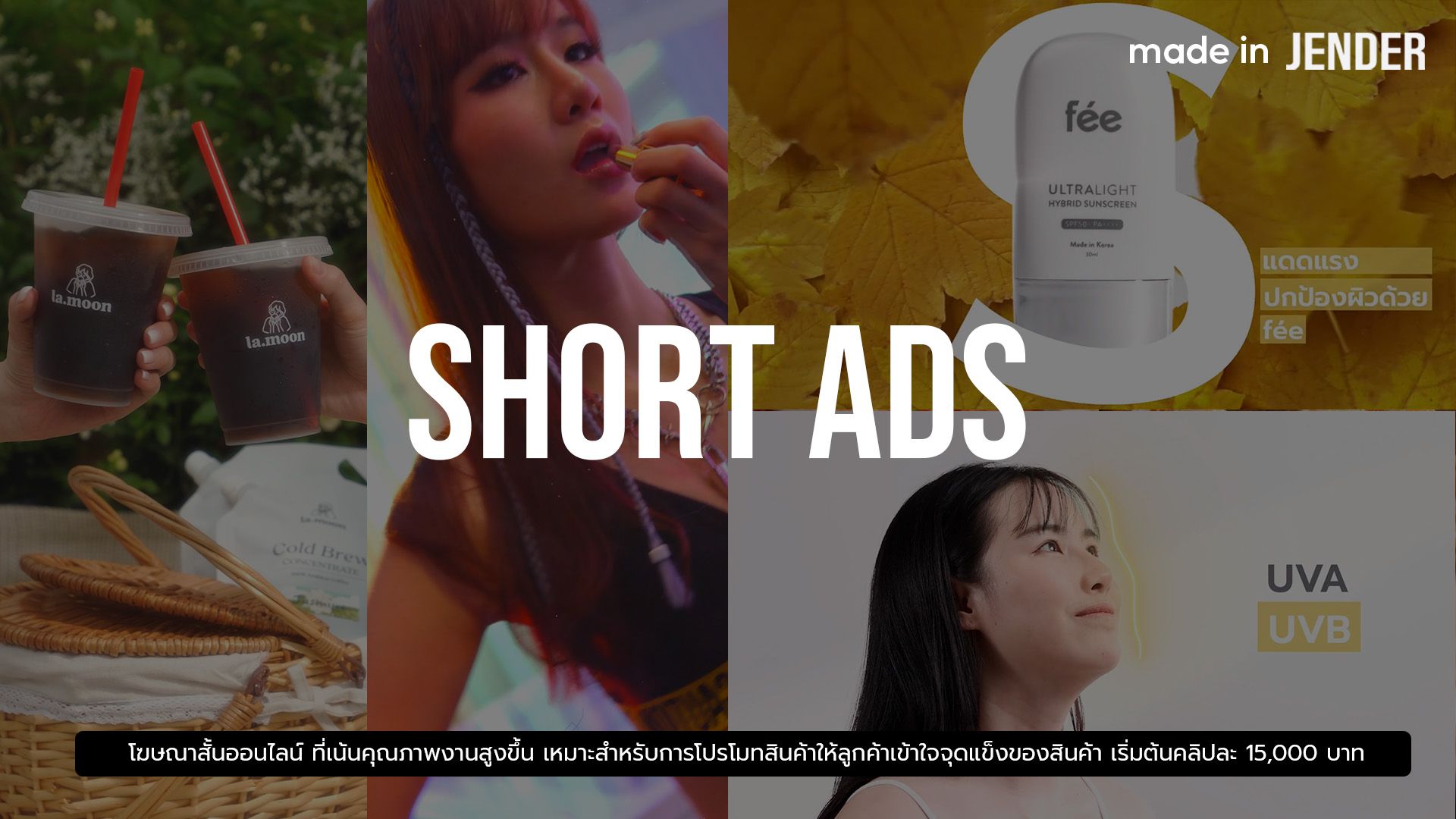| แพ็กเกจ | 5,000 บาท คลิป Online Product ถ่ายสินค้ากับกระดาษสี พร้อม Props 1 คลิป ความยาวคลิปไม่เกิน 1 นาที ถ่ายสินค้ากับกระดาษฉากตาม Mood ของสินค้า | 15,000 บาท คลิป Short Ads 1 คลิป : ความยาวคลิปไม่เกิน 1 นาที สำหรับโฆษณาสั้นออนไลน์ เหมาะสำหรับการโปรโมทสินค้า | 50,000 บาท คลิป Commercial Ads 1 คลิป : ความยาวคลิปไม่เกิน 90 วินาที วิดีโอโฆษณาคุณภาพสูง เหมาะกับการสร้างแบรนด์ | ราคาตามตกลง กำหนดเอง คุณสามารถคุยกับฟรีแลนซ์เพื่อตกลงกันแบบอิสระได้ |