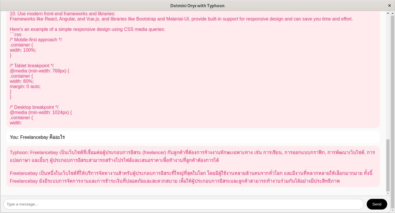 | แพ็กเกจ | 5,000 บาท Linux AI Chat App Application สำหรับ chat กับ AI ChatGPT บน Linux | ราคาตามตกลง กำหนดเอง คุณสามารถคุยกับฟรีแลนซ์เพื่อตกลงกันแบบอิสระได้ |
