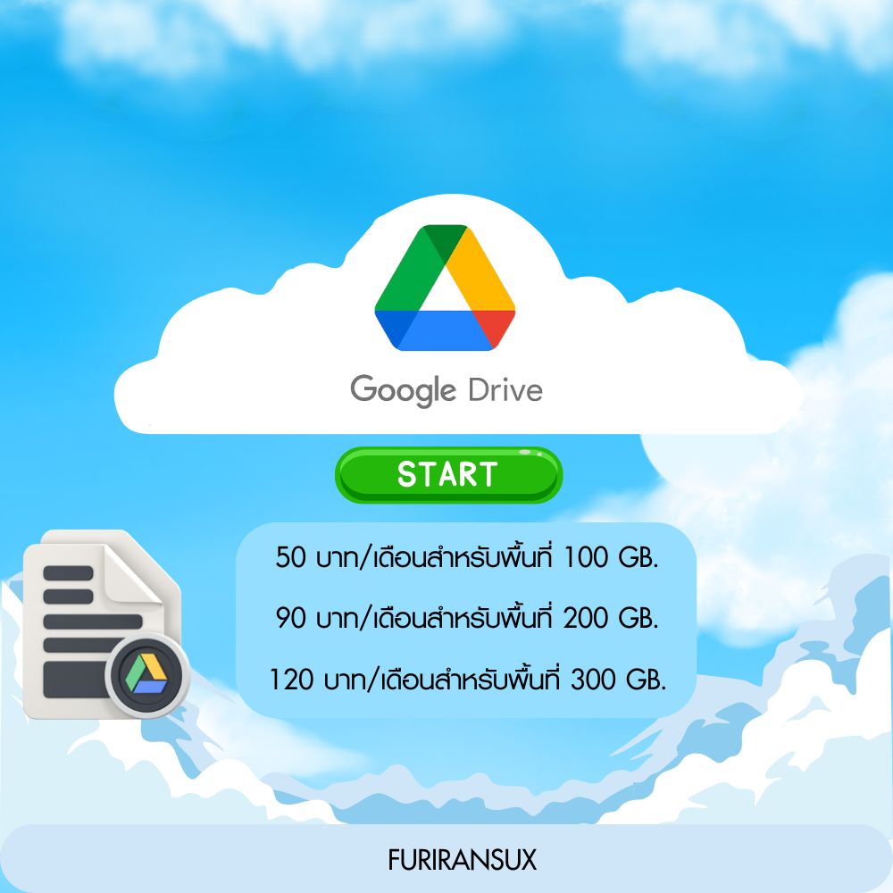 ให้บริการเช่าพื้นที่บน Cloud Google Drive เริ่มต้นเพียง 50 บาท สำหรับ พื้นที่ 100 Gb.