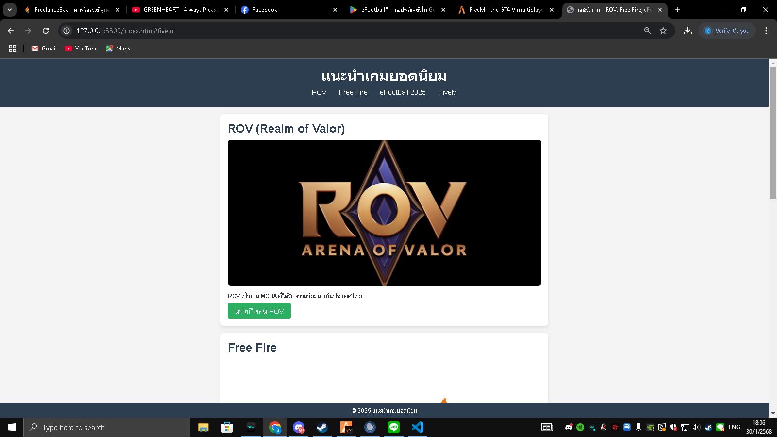 สวัสดีครับ, ผมเป็น Freelance Web Developer มีประสบการณ์ในการสร้างเว็บไซต์ด้วย HTML, CSS และ Responsive Design พร้อมช่วยปรับแต่งหรือสร้างเว็บไซต์ที่สวยงามและใช้งานได้ดีบนทุกอุปกรณ์
