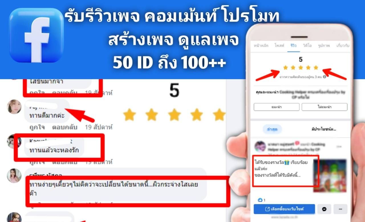 รีวิวแฟนเพจ 5 ดาว คอมเม้นท์ใช้คนจริงๆทุกคอมเม้น แนะนำเพจ โปรโมทเพจ เพื่อหาลูกค้าออนไลน์อย่างชาญฉลาด
