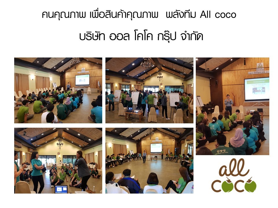 ประสบการณ์การอบรมสัมมนากึ่งทีมบิ้วดิ้ง ในหัวข้อ "คนคุณภาพ เพื่อสินค้าคุณภาพ" ให้กับพนักงานบริษัท ออล โคโค กรุ๊ป จำกัด เป็นการออกแบบหลักสูตรและวิธีการเรียนรู้จากการตีโจทย์ที่ได้รับจากองค์กร เพื่อสร้างคนคุณภาพ ให้มีพลังทีม ในการผลิตและส่งมอบสินค้าคุณภาพ ให้กับลูกค้า