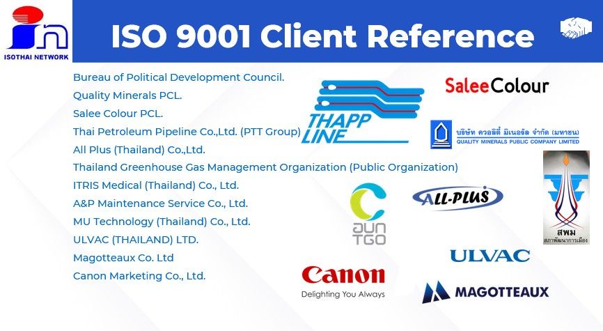 ISOTHAI Network Co., Ltd. ให้บริการฝึกอบรม ที่ปรึกษาจัดทำระบบในระบบมาตรฐาน เช่นISO9001, ISO14001, ISO45001, IATF16949, GHPs/HACCP, BRCGS, FSSC22000, ISO14064, CFO, ISCC, ISO13485, GDP, ISO17025, GACP