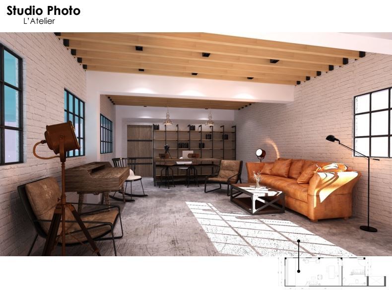 จาก concept ที่ดึงเอา element ของ Art studio ตาม warehouse และ ตึกร้าง ตามสไตล์ยุโรป ที่เรียกว่า Atelier มาดัดแปลงให้กลางเป็น studio สำหรับถ่ายภาพ ที่สามารถใช้ มุมทุกมุม ของ studio เป็นฉาก ด้วยตัวของมันเองได้ วัสดุที่มีความดิบ และเก่า อีกทั้งประกอบไปด้วย texture ทำให้มีความรู้สึก มีเรื่องราวในตัวของมัน