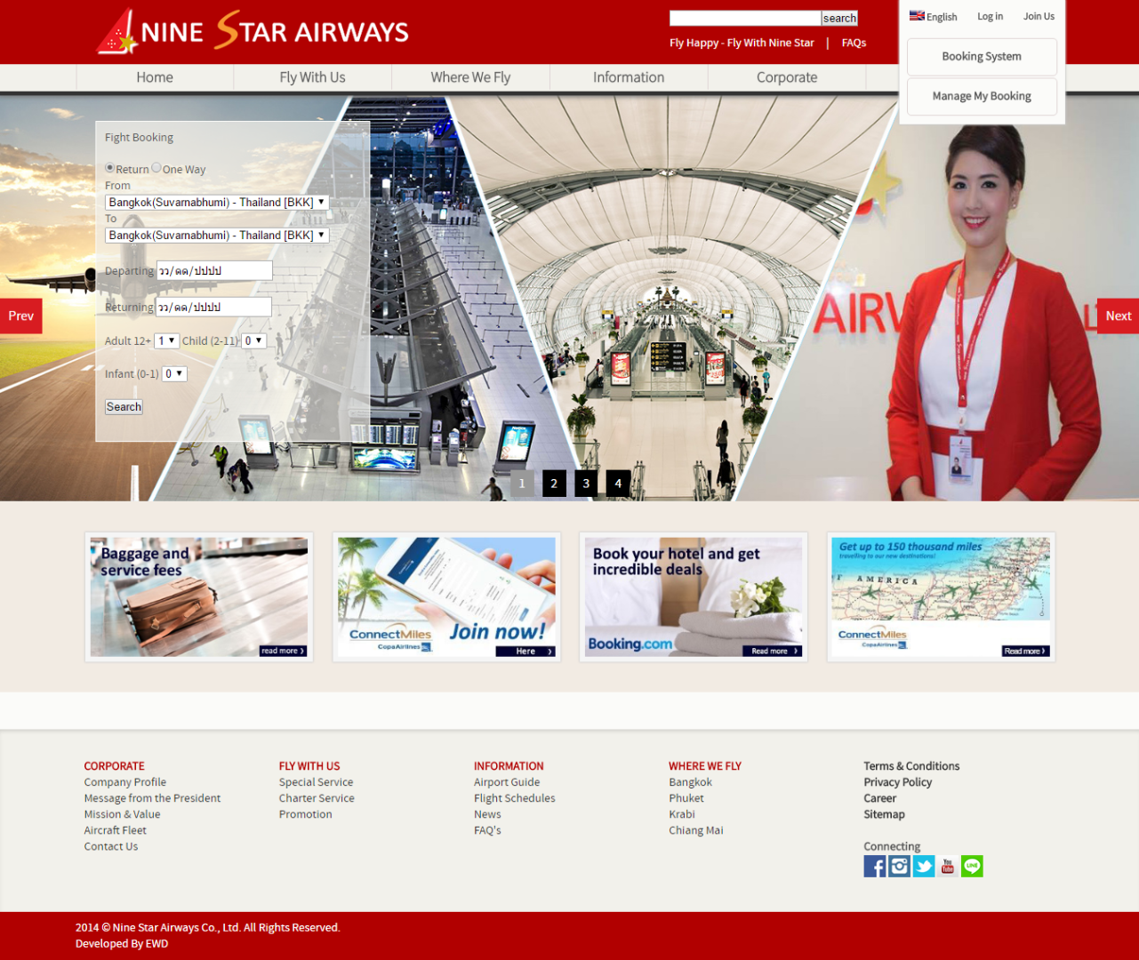 Web Design สายการบิน Nine Star Airway ( V. 2014 - 2015 )