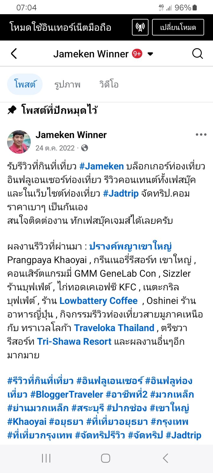 เจมส์ Jameken บล็อกเกอร์ท่องเที่ยวรับจ้างรีวิวโรงแรม-รีสอร์ท , ร้านอาหาร , ที่เที่ยว ทั่วไทย