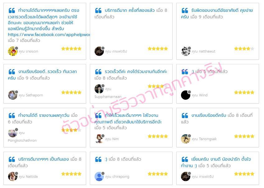 ตัวอย่างคะแนนและรีวิวจากผู้จ้าง