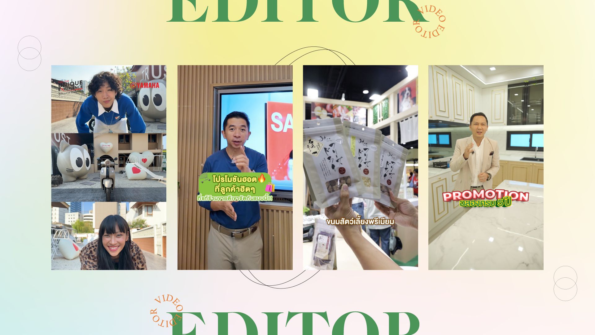 | แพ็กเกจ | 1,700 บาท ความยาวไม่เกิน 2 นาที สำหรับวิดีโอความยาวไม่เกิน 2 นาที | 2,500 บาท ความยาวไม่เกิน 5 นาที สำหรับวิดีโอความยาวไม่เกิน 5 นาที | 3,000 บาท ความยาวไม่เกิน 7 นาที สำหรับวิดีโอความยาวไม่เกิน 7 นาที | ราคาตามตกลง กำหนดเอง คุณสามารถคุยกับฟรีแลนซ์เพื่อตกลงกันแบบอิสระได้ |