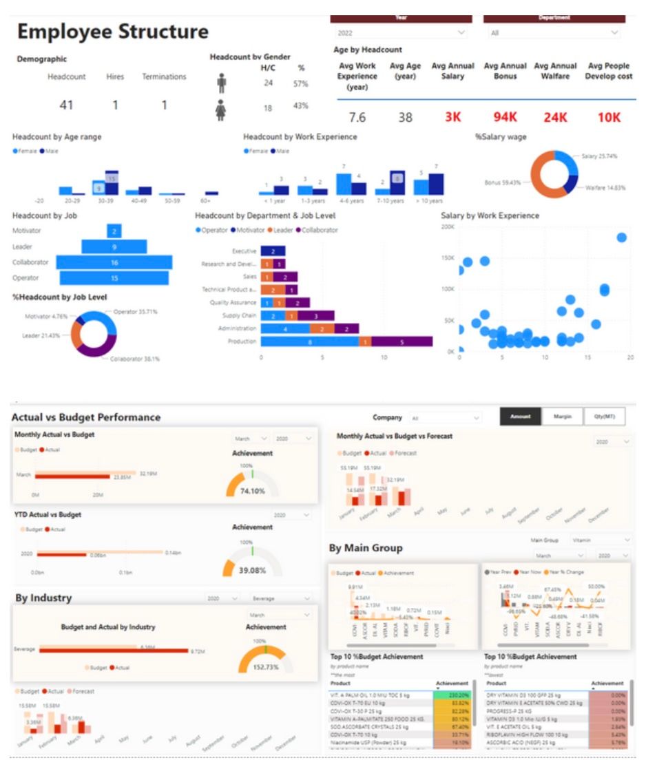 การวิเคราะห์ข้อมูล และนำเสนอในรูปแบบ visualization เพื่อเข้าใจง่ายและตอบโจทย์ธุรกิจ เช่น กาาวิเคราะห์ในส่วนงานขาย บริหารบุคคล การเงิน การบริหารสินค้าในสต๊อก เป็นตัว