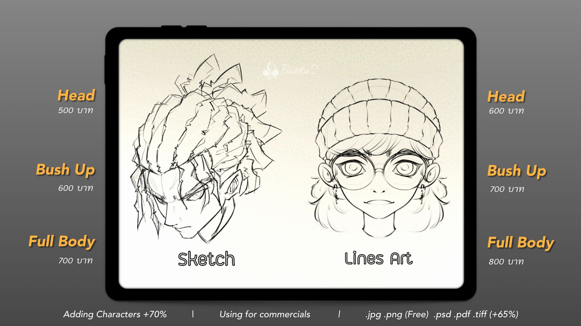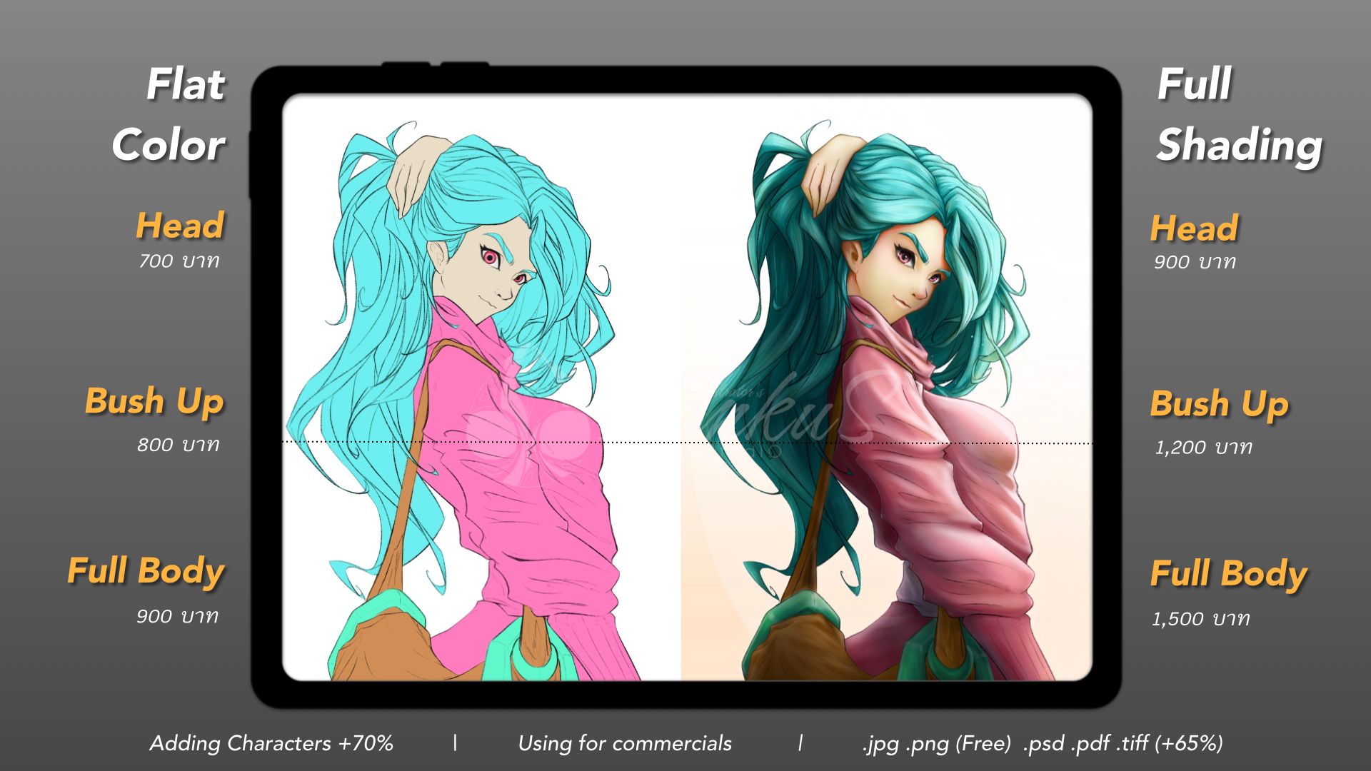 | แพ็กเกจ | 1,500 บาท Basic ออกแบบ 1 ตัวละคร (Character Sheet) +80%/ตัว | 2,500 บาท Add Situations Basic + วาดตัวละครแสดงท่าทางเพิ่ม 3 ท่าทาง | ราคาตามตกลง กำหนดเอง คุณสามารถคุยกับฟรีแลนซ์เพื่อตกลงกันแบบอิสระได้ |