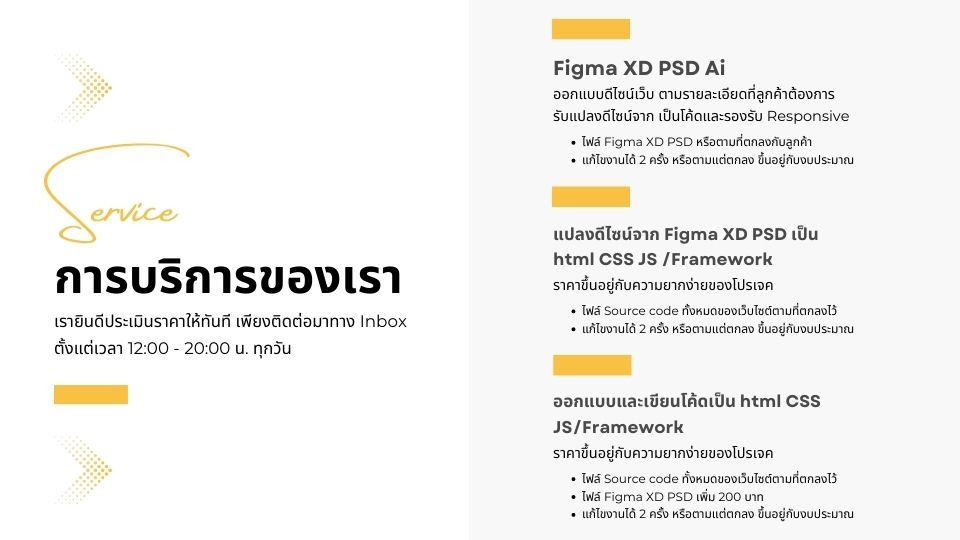 2) เปลียนจากดีไซต์จาก Figma XD PSD AI โค้ดเป็น HTML/CSS/JS หรือ Framework (Vue, React, Next, Laravel) ต่างๆ