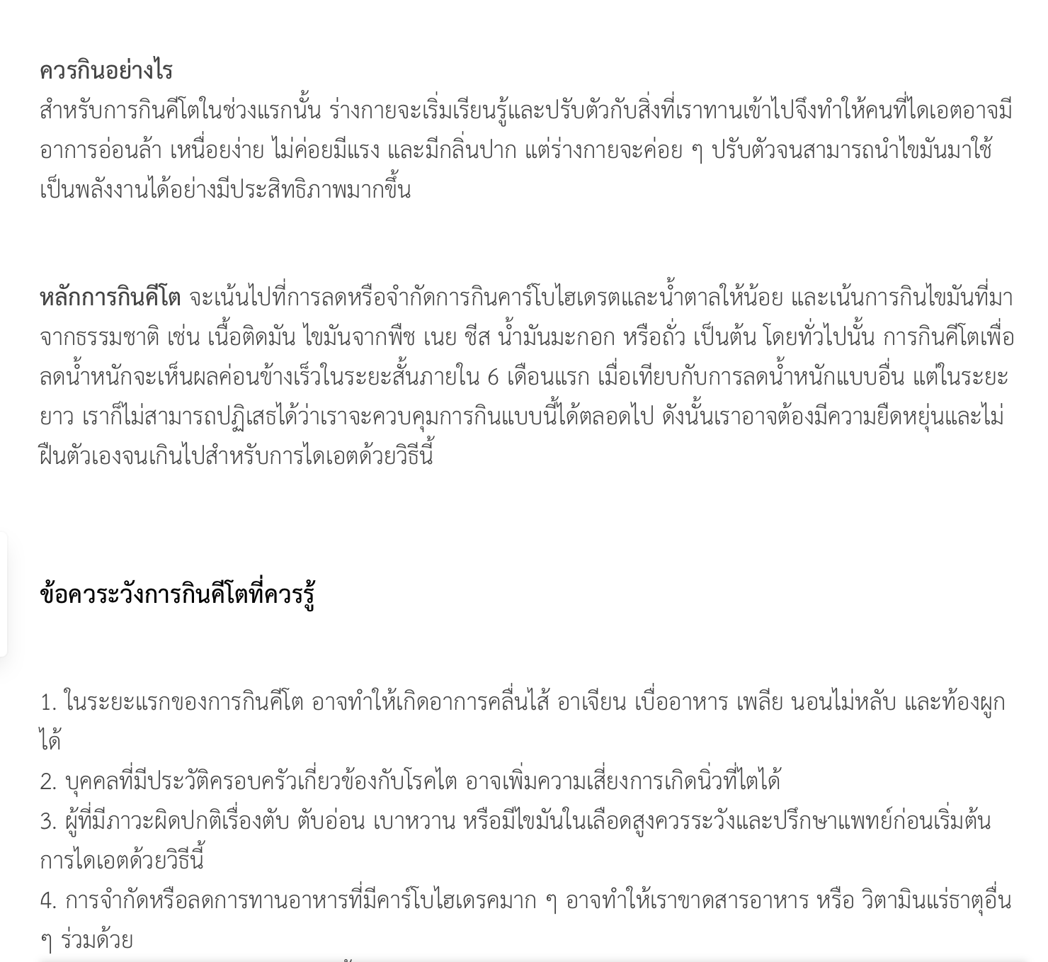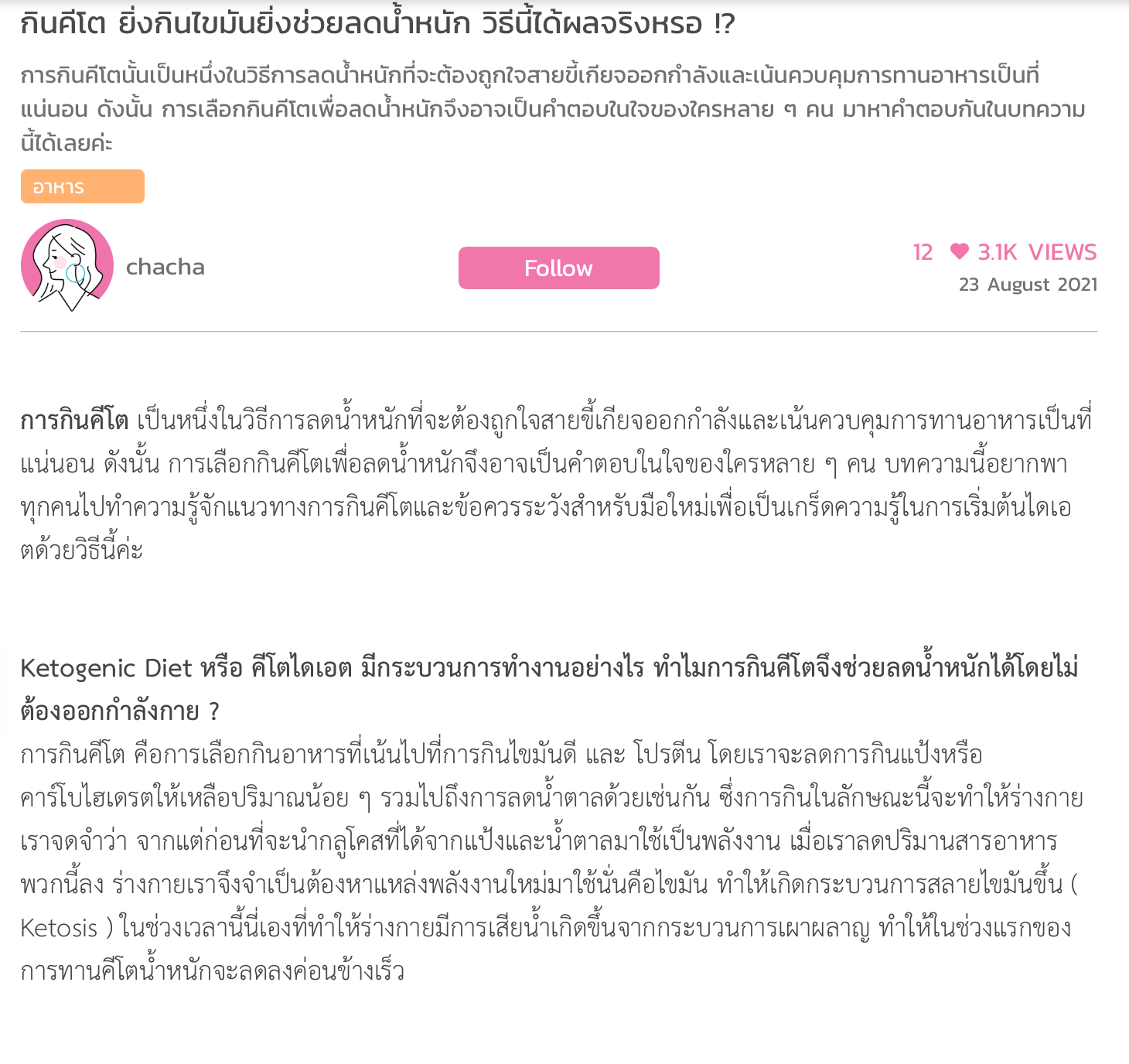 บทความให้ข้อมูลเกี่ยวกับการกินคีโต