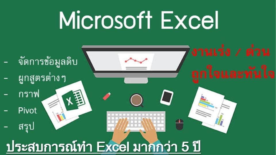 (รับงานด่วน) รับจ้างทำ Excel จัดการข้อมูลดิบ , ทำสูตร , สร้างกราฟ , Pivot ได้ข้อมูลพร้อมใช้