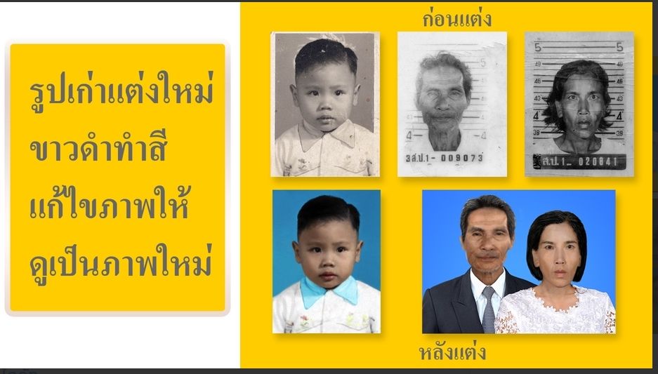 ซ่อมแซมภาพเก่า แต่งใหม่ใส่สี ราคาเริ่มต้นที่ 350 บาท